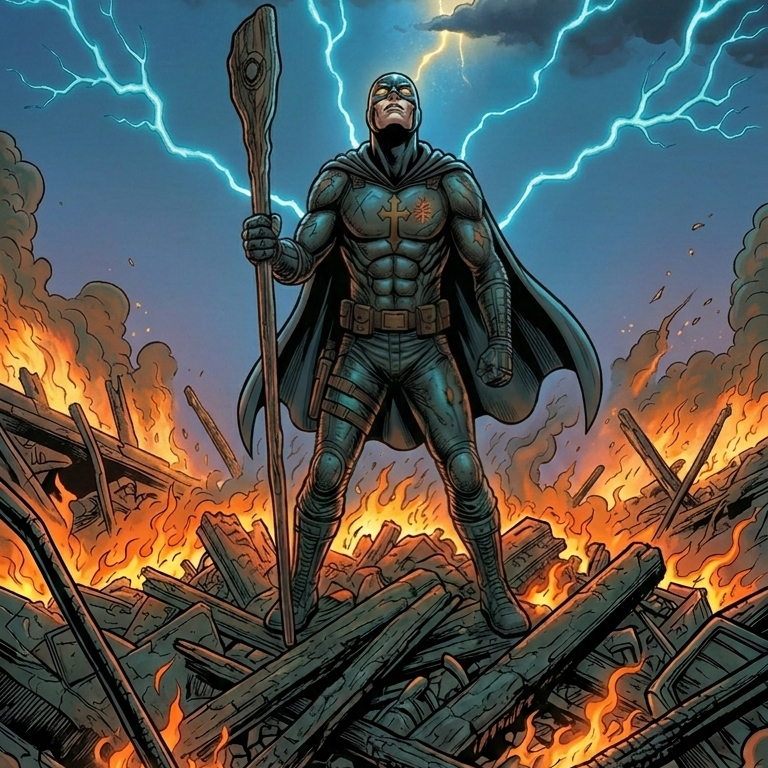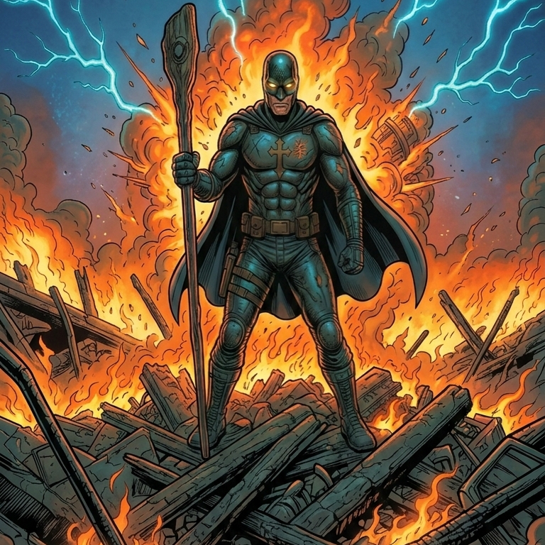 The story unfolds in a world of chaos, where the hero must navigate a landscape of fire and wreckage to protect the innocent. Featuring striking artwork and a narrative that balances grit with grace, Issue #1 sets the stage for a sprawling battle between ancient forces and modern-day heroism. Hubbard’s vision for the series is rooted in the "Aegis Protocol," a mysterious framework that hints at a deeper, divine purpose behind the hero’s mission, offering readers a unique alternative to traditional secular caped crusader stories.